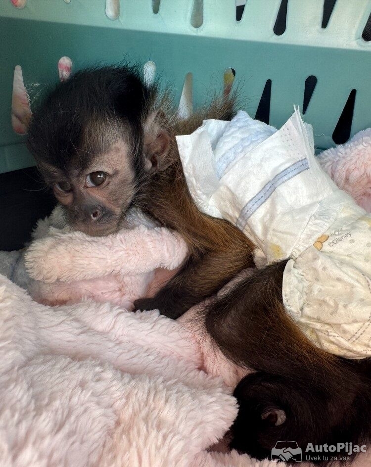 Беба капуцин мајмуна, стара само неколико недеља, веома слатка! Дозвољено од стране USDA, Велика Британија. Укључен је лист за негу, плус почетни комплет. Са свим папирима. У пеленама и одлично једе.