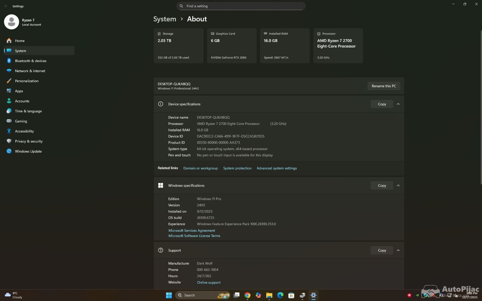 ✳️ Procesor: *Ryzen 7 2700 Cores 8 Threads 16*