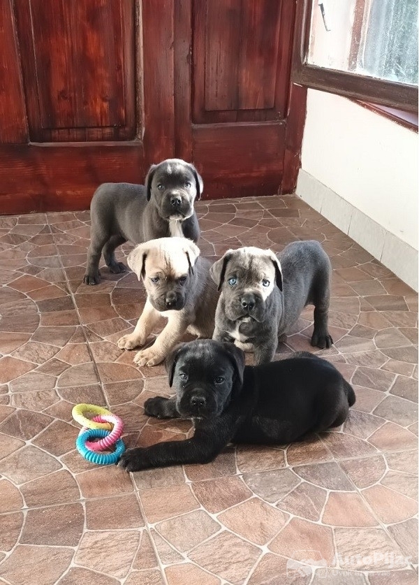 Sivi, crni, formentino i tigrasti štenci kupiranih repova.