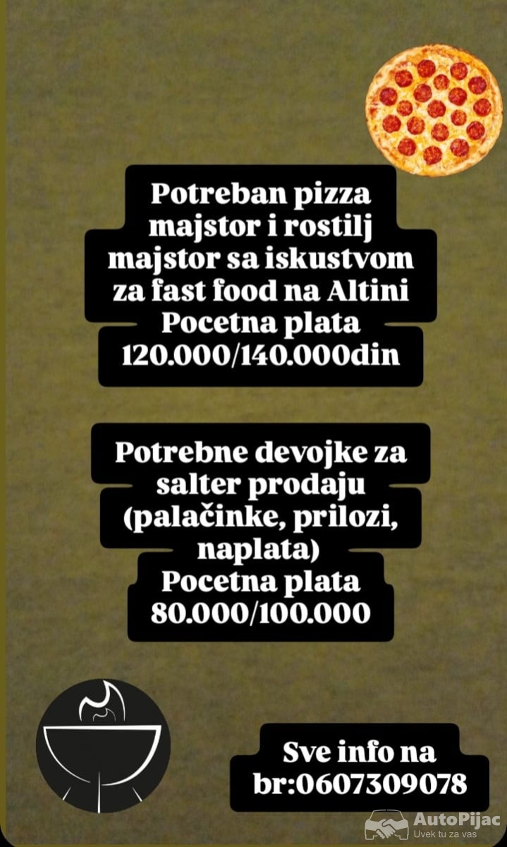 Potreban pizza majstor i roštilj majstor sa iskustvom za fast food na Altini.