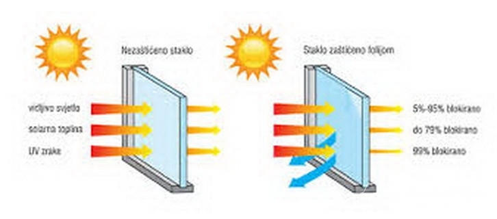 Folije za stakla, zastita od sunca, sa efektom „silver-ogledalo", omogucava zastitu privatnosti,a ujedno stiti od sunca i smanjuje temperaturu u prostoru do 12C,a pritom pruza totalnu UV zastitu.