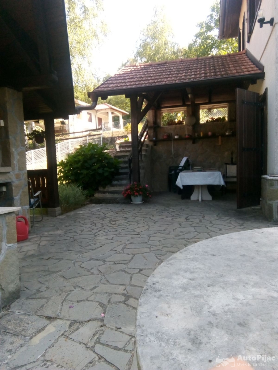 Kuća se nalazi na parceli 8,75 ari, koja je projektovana u 4 kaskade i lepo urađenim popločanim stepenicama u kamenu, i posebno ozidanim ostavom (šupom) površine 12 m2.